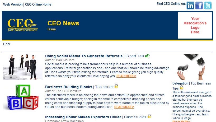 The selected membership offer can be promoted via the Association’s web site, electronic newsletters, bulletins etc. and a unique sign-up page will be created, co-branded with your logo, outlining the opportunity and guiding your members through the self-registration process. View an example of the unique sign-up page With Premium membership, your members can enjoy these Premium professional development resources: